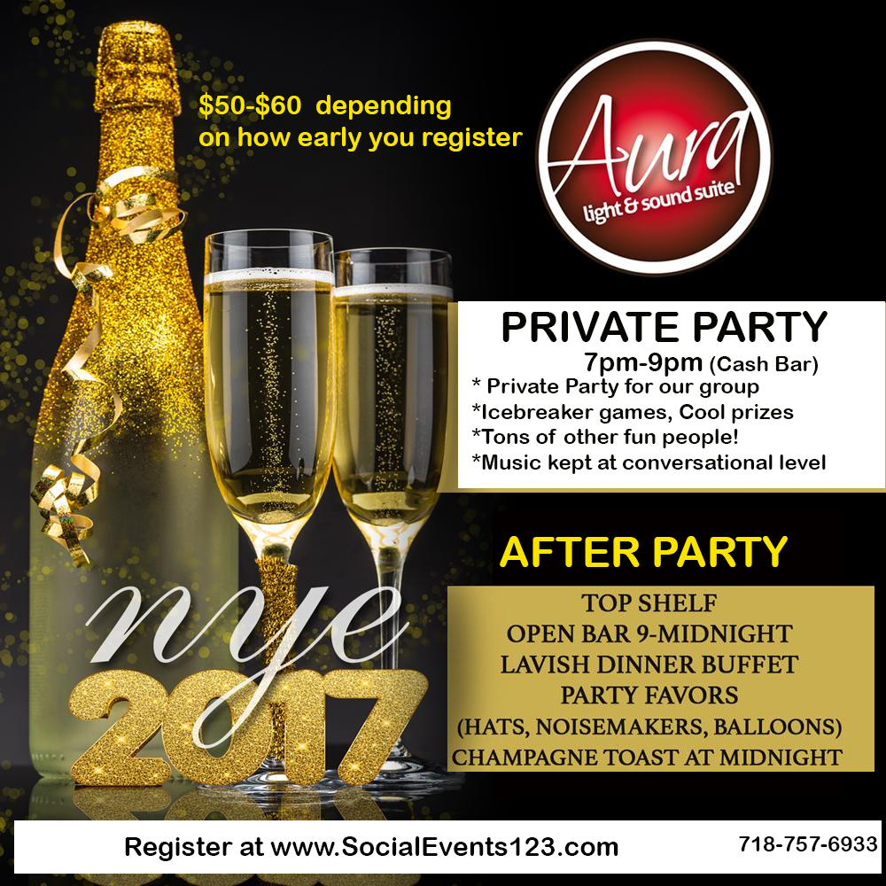 If you are NOT single, you are still welcome to register and show up at the tail end of part 1 (8:30) This way you will not get stuck waiting online when the doors open to the public and also not have to wait on an long buffet line.At 9:00 PM, it opens to the public (open to all) and it will turn into a great dance party! The venue is having open bar from 9 PM to Midnight and a lavish buffet. Our past Long Island New years Eve events have had had a great turnout. Join other fun people looking to mingle. There will be prize give-a-way's, and contests/icebreakers to get you in the spirit of this fantastic mingle.